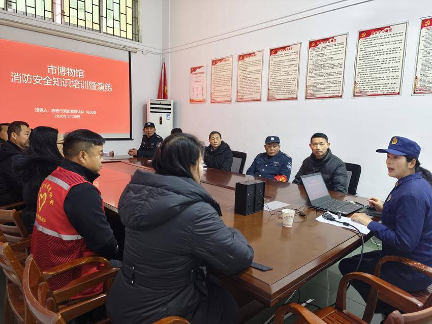 赤壁市消防救援局走进市博物馆开展消防安全培训,通过理论授课与实操演练,提升文博单位火灾防控与应急处置能力。...