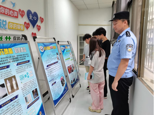 6月26日,蒲纺社区戒毒康复中心联合陆水湖派出开展禁毒宣传实践活动,通过沉浸式学习提升学生识毒、防毒、拒毒意识。